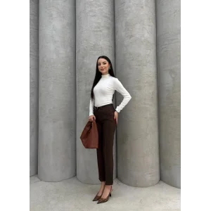 İspanyol yırtmaçlı paça deri pantolon bej hn