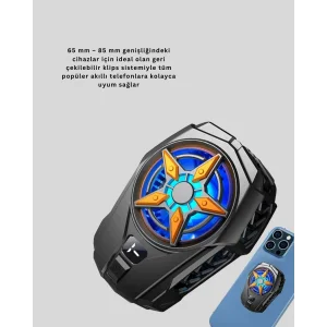 Telefon soğutucu cihaz, yoğun oyun performansı veya uzun süreli video çekimleri sırasında cihazınızın aşırı ısınmasını engeller. TEC çip teknolojisi sayesinde cihaz yüzeyinde oluşan fazla ısıyı hızla emerek serinletir. Böylece donma, kasma ve performans düşüşü yaşanmadan kesintisiz kullanım sağlanır.Cihaz, iki farklı çalışma moduna sahiptir. Standart modda dahili 2000mAh bataryası ile kablosuz kullanım sunarken, AI modunda sadece Type-C kablo üzerinden çalışarak daha güçlü soğutma sağlar. Bu yapı, hem taşınabilirlik hem de yüksek performans açısından büyük avantajdır.Dayanıklı ABS ve alüminyum alaşımlı malzemelerden üretilen cihaz, yalnızca 120 gram ağırlığındadır. RGB aydınlatma ve dijital ekran özellikleri, hem estetik bir görünüm hem de işlevsellik sunar. Kompakt yapısı sayesinde seyahatlerde yanınızda taşımak oldukça kolaydır.