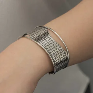Şık ve fantezi görünümü seven kadınlar için ideal bir seçenektir. Koleksiyonlarda; gösteriş ve şıklığın peşinde olan kadınlar için tamamen el işçiliğiyşe yapılmış bu bilezik her zevke ve konsepte uygun modeli ile sizleri bekliyor. Bu şık modeli; doğum günü hediyesi, sevgililer günü hediyesi olarak özel günlerde tercih edebilirsiniz. Elişi kalemli kadın bilezik modeli 925 ayar gümüşten imal edilmiştir. Gümüş üzerine rodyum kaplama yapılmıştır. Rodyum kaplama yapılan gümüş kadın bilezik modelleri parlaklığını uzun süre muhafaza eder, oksitlenmesi gecikir. Tüm gümüş kadın bilezikler de olduğu gibi bu gümüş elişi kalemli kadın bilezik modeli de el emeği ile üretilmiştir. Gümüş ve değerli taşlar nedeniyle belirtilen ortalama ürün ağırlığında ± %10 sapma olabilmektedir.