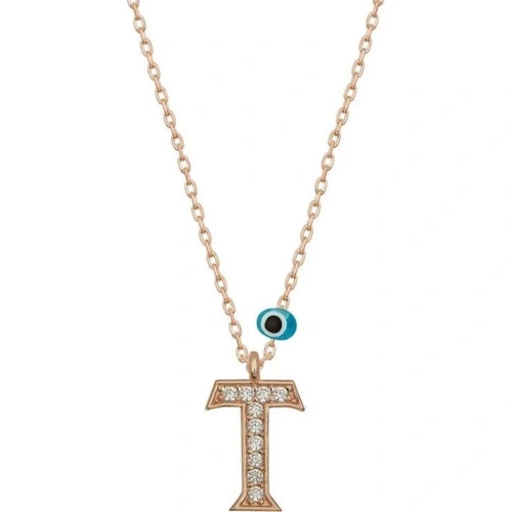 925 Ayar Gümüş Nazar Rose T Harfi Kadın Gümüş Kolye (T6890) (336336)