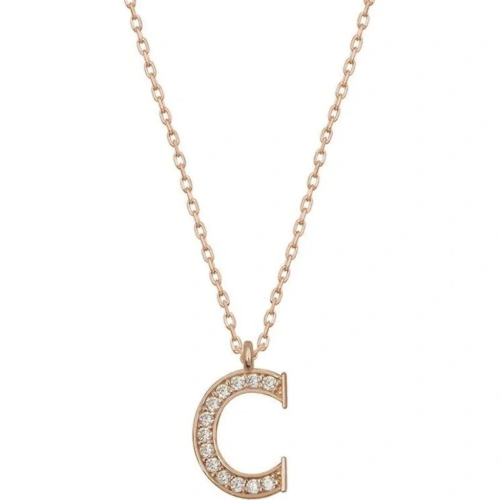 925 Ayar Gümüş Rose C Harfi Kadın Gümüş Kolye (T6725) (336336)