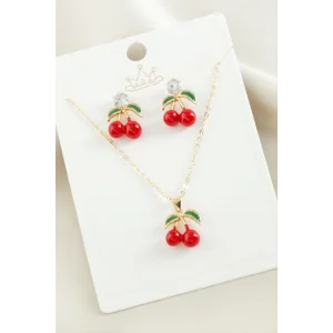 Kiraz Zirkon Taşlı Mineli Set Kolye