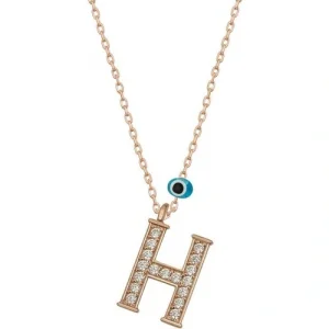 925 Ayar Gümüş Nazar Rose H Harfi Kadın Gümüş Kolye (T6876) (336336)