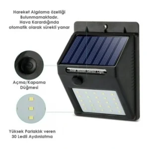 Buğz Kablosuz Solar LED Lamba | Bahçe, Veranda, Merdiven Işığı, Otomatik Aç-Kapa Sensörlü