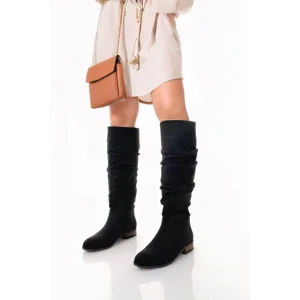 Winda Siyah Süet Körüklü Çizme