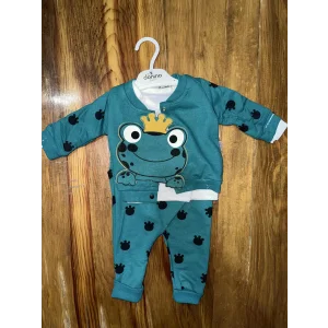 3-12 aylık kurbağa desenli üçlü takım koyumavi
