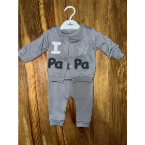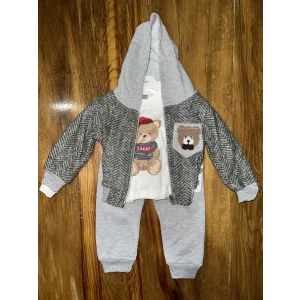 6-24 aylık ceketli kapşonlu üçlü takım gribeyaz