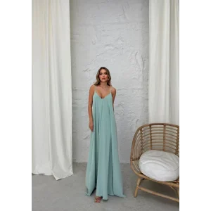 Yırtmaçlı kalın bürümcük uzun elbise Yeşil