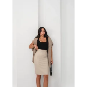 Arkadan yırtmaçlı kalem etek bej