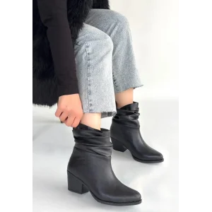 Lukana Siyah Cilt Topuklu Körüklü Bot