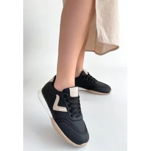 Jowen Siyah Cilt Bej Detaylı Bağcıklı Spor Ayakkabı