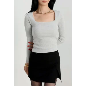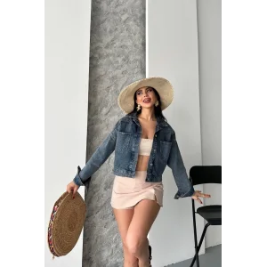 Çift cepli kol katlamalı süper taş enzim yıkama crop kot ceket füme d2000