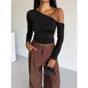 Çift cepli kol katlamalı kar yıkama crop kot ceket kahve tint d2000
