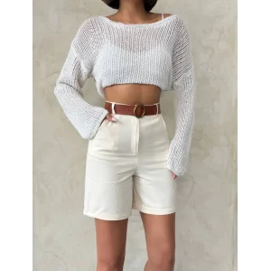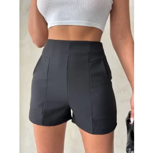 Yüksek bel parçalı double kumaş şort s25312