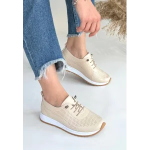 Tone Bej Cilt Bağcıklı Spor Ayakkabı
