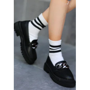 Monya Siyah Cilt Bağcıklı Spor Ayakkabı