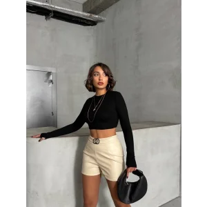 Tokalı deri şort h24444
