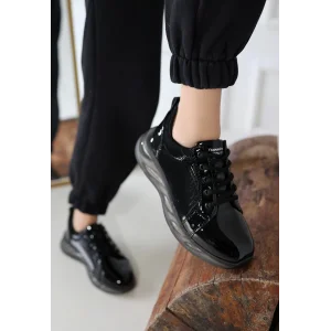 Lulu Siyah Cilt Bağcıklı Spor Ayakkabı