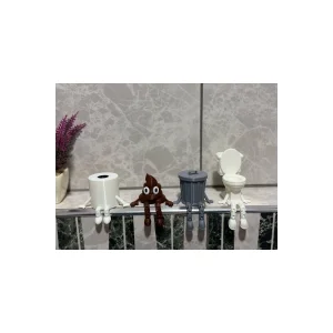 4'lü Eğlenceli Banyo Dekoratif Figür Seti /Tuvalet Kağıdı, Kaka Emojisi, Çöp Kovası, Klozet Aksesua
