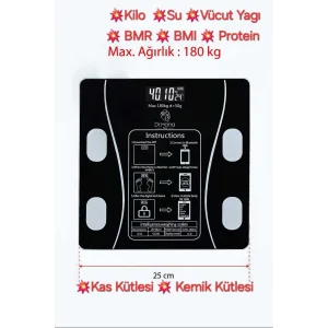 Dijital Baskül Yağ Su Kas Vücut Kitle Endeksi Kilo Ölçer Tartı