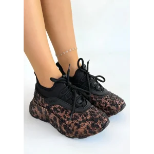 Rimay Kahverengi Leopar Boncuk İşlemeli Spor Ayakkabı