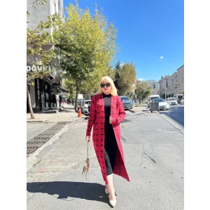Triko Hırka elbise ikili takım kırmızıSiyah