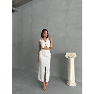Desniy Beyaz Cilt Topuklu Ayakkabı
