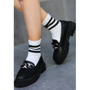 Monya Siyah Cilt Bağcıklı Spor Ayakkabı