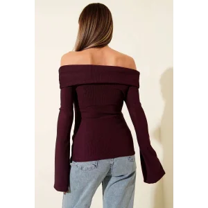 Bu kahverengi asimetrik yaka bluz, şıklığı ve rahatlığı bir arada sunuyor. Hem günlük kullanıma hem de özel günlerde tercih edebileceğiniz şık bir parça.