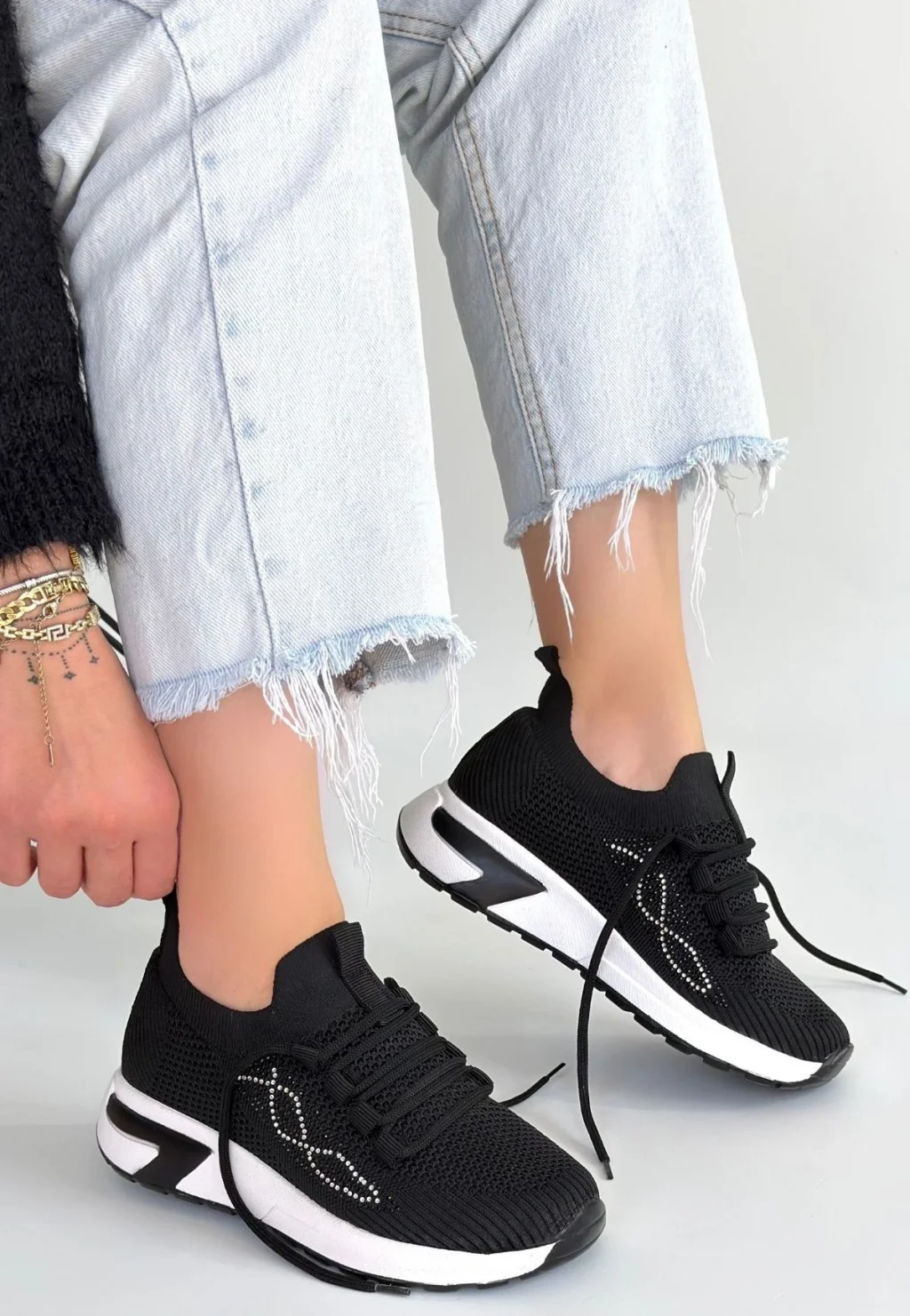 Belan Siyah Triko Bağcıklı Spor Ayakkabı