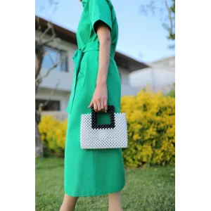 Bu şık el yapımı incili el çantası, her tarza ve her duruma uygun bir seçenektir. İncilerle süslenmiş tasarımı, sade ve zarif bir görünüm sunar.