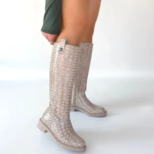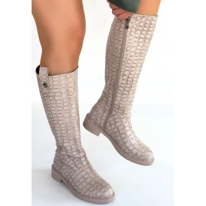 Detay: Topuklu Yandan Fermuarlı Arka Kısmı Streç Diz Altı Çizme