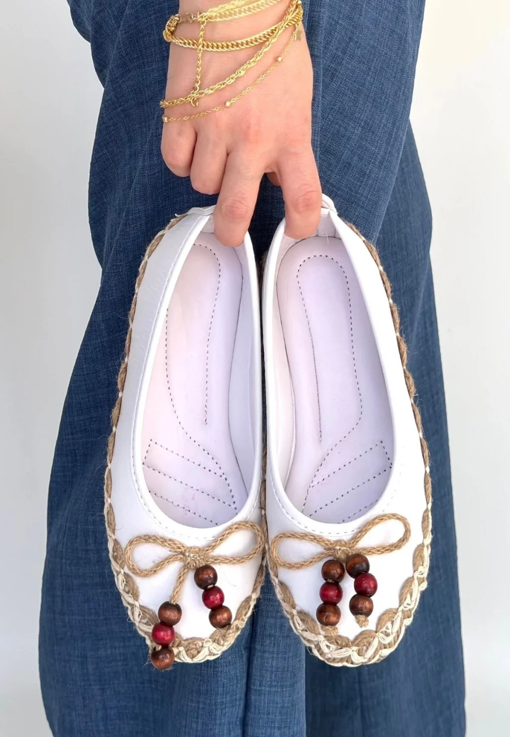 Ilwe Beyaz Cilt Babet Ayakkabı