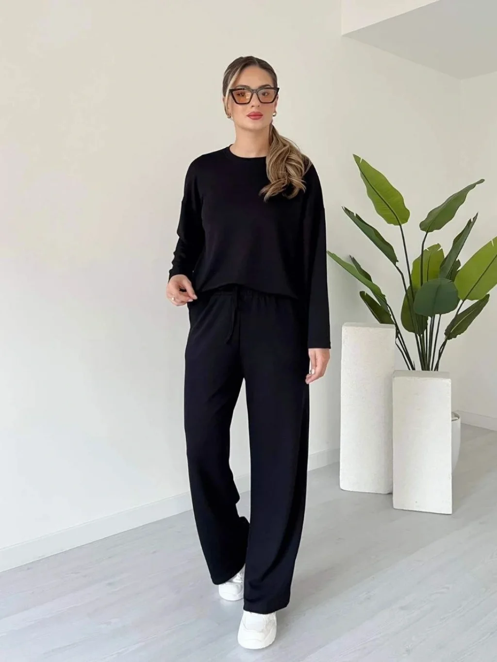 şık ve rahat tasarımıyla öne çıkan Siyah Kollu Modal Takım, kadın giyim koleksiyonunda yerini alıyor.