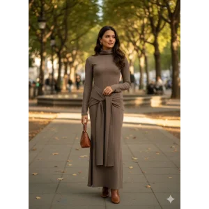 Bu bej renkli Kuşaklı Model Esnek Kumaşlı Elbise, şıklığı ve rahatlığı bir arada sunuyor.