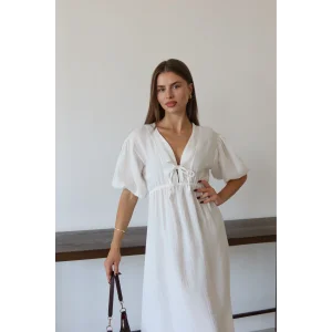 - Kadın giyim kategorisinde yer alan modern ve zarif bir elbise modelidir.