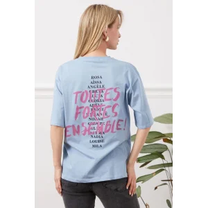 Bu tişört, kadın giyim kategorisinde yer aldığı için feminen ve trend bir görünüm sunar.