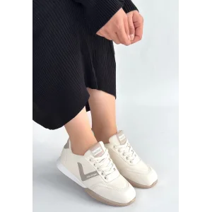 Monya Beyaz Cilt Bağcıklı Spor Ayakkabı