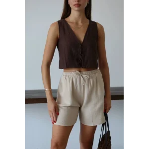 Parçalı cepli deri şort ile şıklığınızı ve tarzınızı ön plana çıkarın. Yaz aylarında rahatlıkla tercih edebileceğiniz bu şort, hem şık hem de konforlu bir seçenektir.