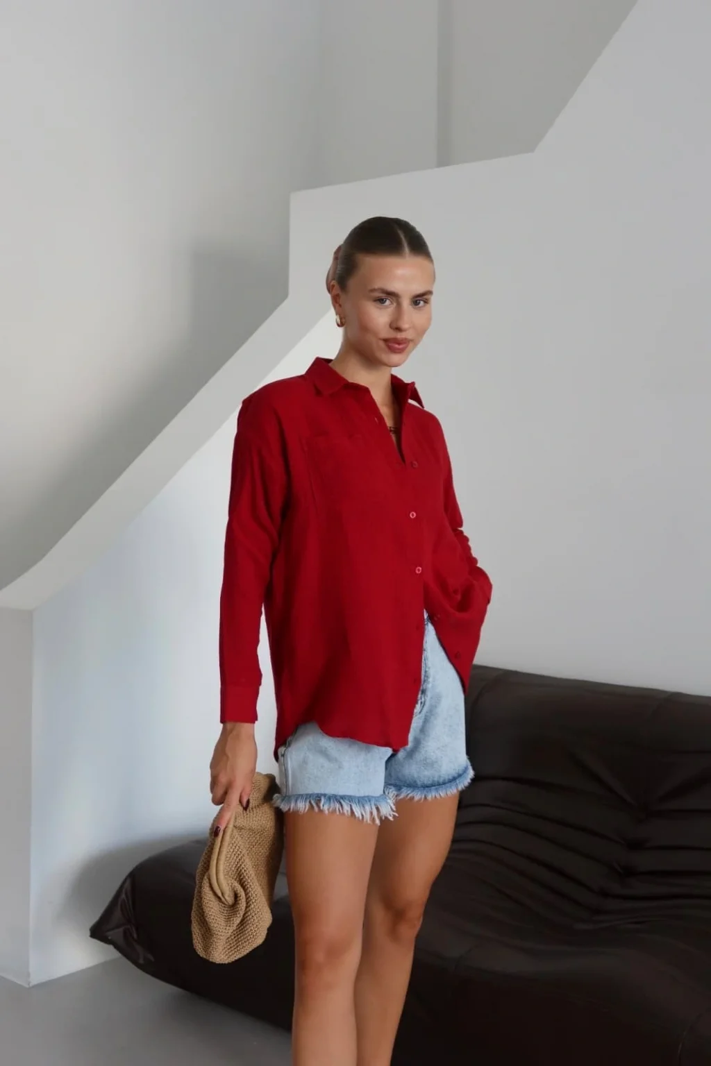Şıklığı ve rahatlığı bir arada sunan Tek Cep Müslin Gömlek ile tarzınızı ön plana çıkarın. Bordo rengi ile dikkat çeken gömlek, şık detaylarıyla göz kamaştırıyor.