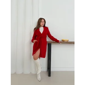Cepli kuşaklı kaşe kaban kırmızı st26458