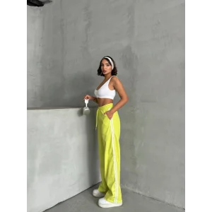 Yandan çift şerit detayları, pantolona modern bir hava katmaktadır.