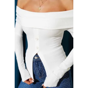 Madonna Yaka Düğmeli Bluz Beyaz t4329