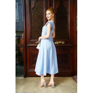 U yaka prenses elbise mavi s255101