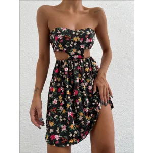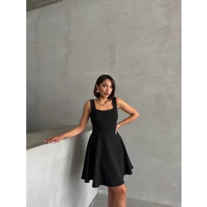 Kadın siyah leoparlı ince askılı likralı elbise s8105