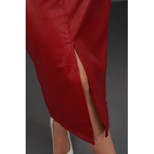 Cep detaylı oval kapaklı deri etek yeşil h240048