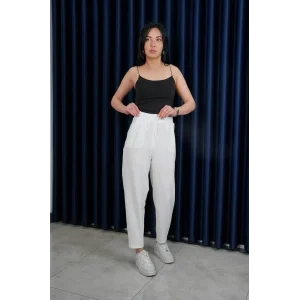 Pileli keten pantolon s255046
