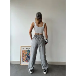 Fitilli şardonlu pantolon gri a4058