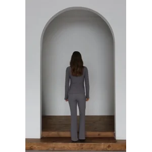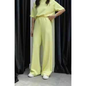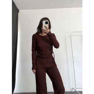 Pantolon yırtmaçlı elbise ikili triko takım vizon elf