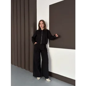 3 iplik içi Şardonlu yarım fermuarlı alt üst takım siyah